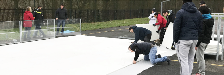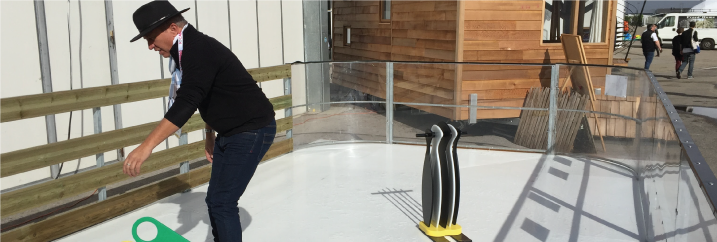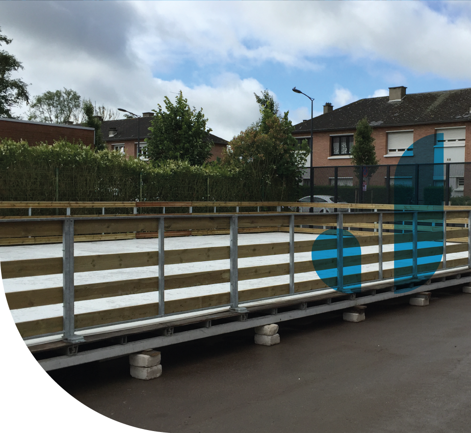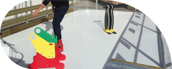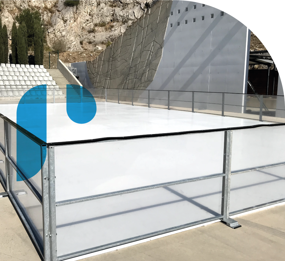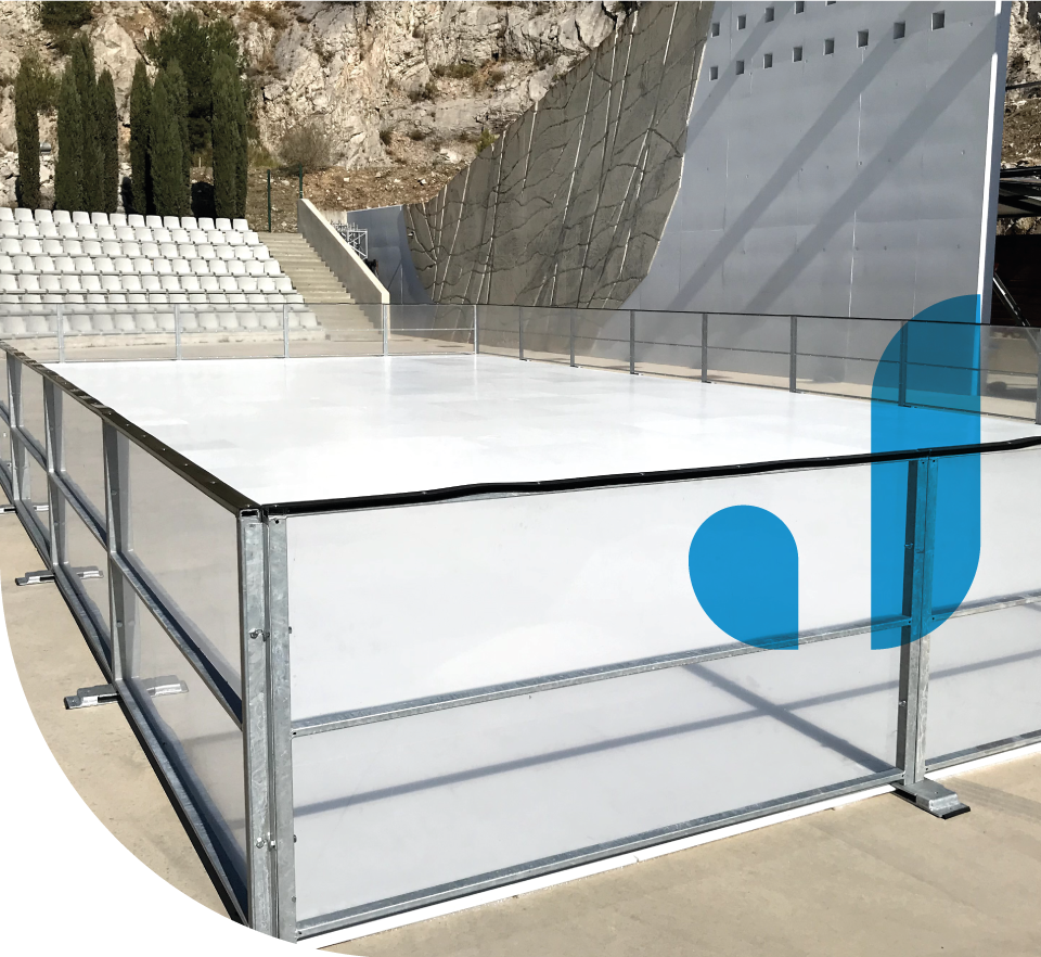 Pour ses patinoires synthétiques, IZIFUN utilise des matériaux d’experts pour une garantie de glisse en toute sécurité. Une patinoire synthétique se construit avec un plancher et des dalles modulables sans oublier les rambardes de sécurités, personnalisables également.