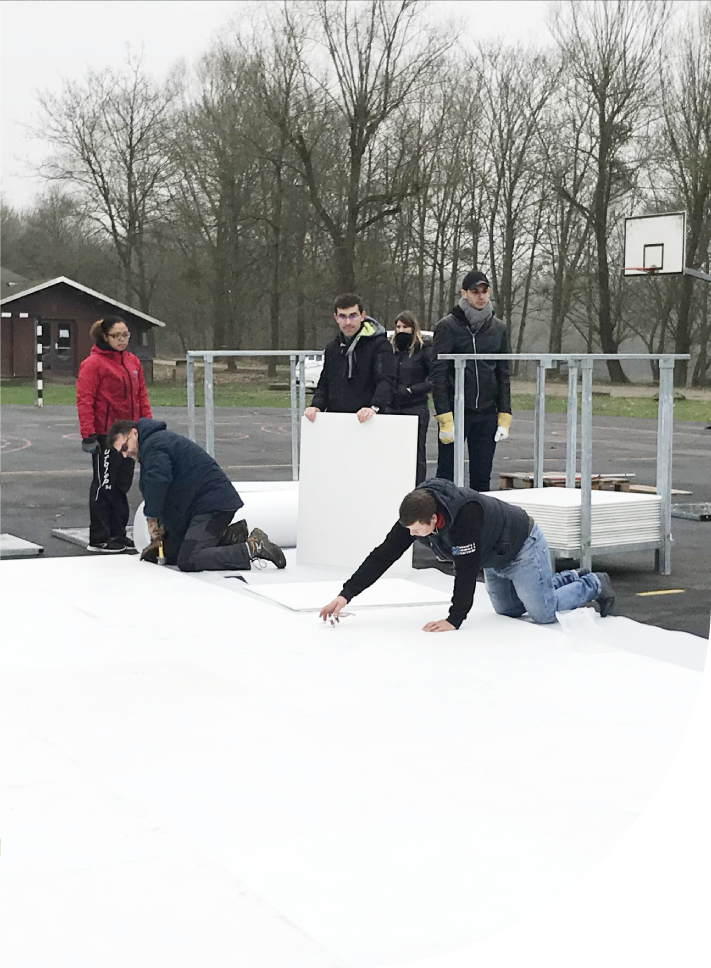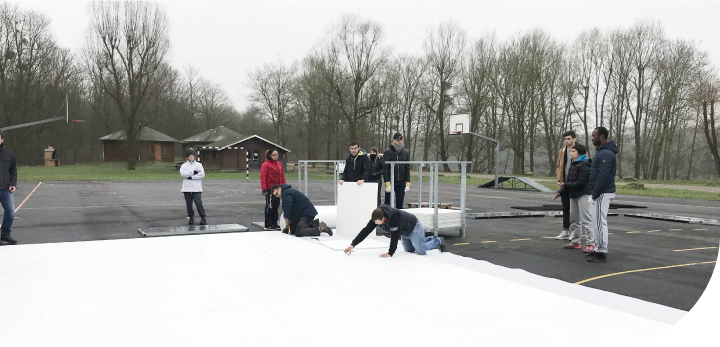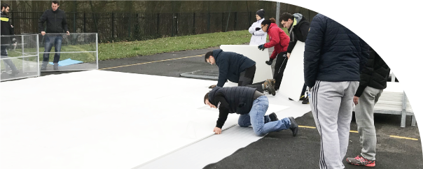 Dans certains cas, nous conseillons d’installer un plancher sur place destinée à accueillir la patinoire. Réalisé en contre-plaqué et recouvert d’un vernis, il offre une résistance de 500kg/m2.